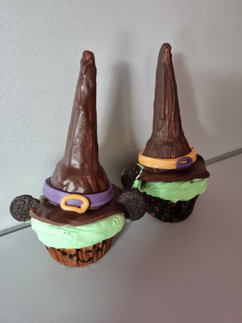 Pendant qu’ils refroidissent, on s’attaque à la préparation des chapeaux de sorcière, à base de chocolat fondu et de cornets de glace.
