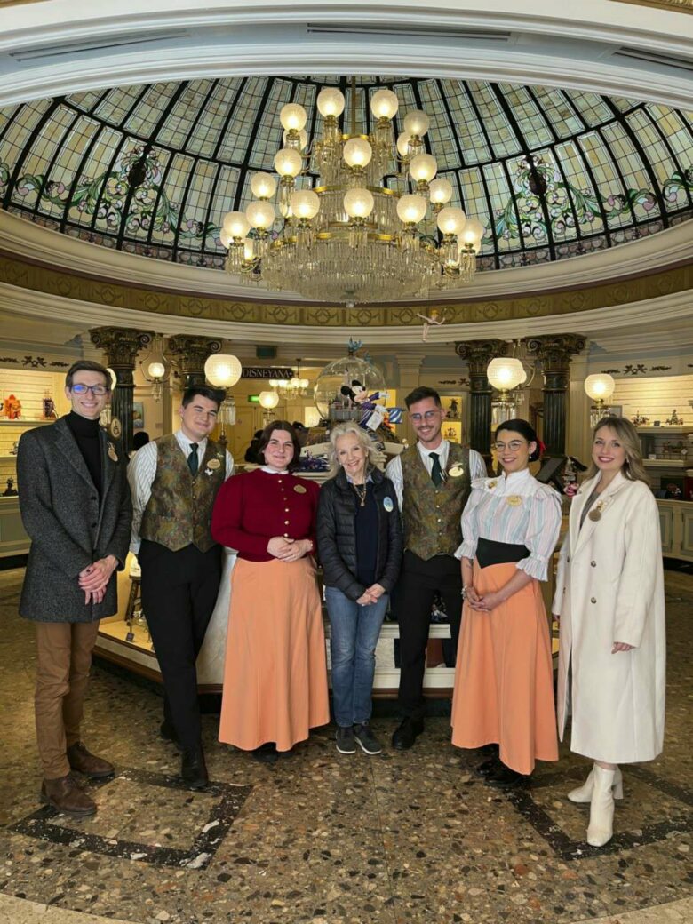 On this occasion, our Ambassadors Carmen and Quentin welcomed her in Harrington’s Fine China & Porcelains on Main Street, U.S.A., whose decoration was directly inspired by Pollyanna (1960), the first Disney film in which she was the heroine. Hayley took the opportunity to talk about her memories of Walt and the film.