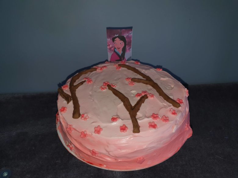 - Maintenant on passe à l’étape délicate qui consiste à étaler la chantilly colorée en mettant la plus foncée en bas du gâteau et en disposant les couches de chantilly plus claires petit à petit en remontant sur le haut du gâteau. Le résultat n’a pas besoin d’être ultra lisse. Le plus important est qu’on puisse voir un petit dégradé de rose.