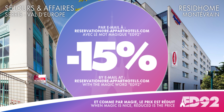 Afin de luter à notre façon contre la hausse du coût de la vie, nous avons négocié et obtenu pour vous une réduction de -15% sur les nuitées au sein des résidences suivantes situées toutes les deux à proximité de la gare RER Val D’Europe :