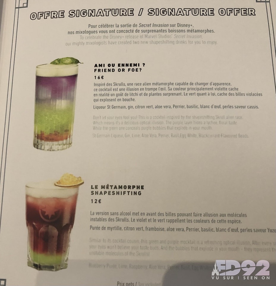 Et c’est encore le cas cette semaine avec un cocktail et un Mocktail sortis pour le nouvelle série (Secret invasion) sur Disney +.